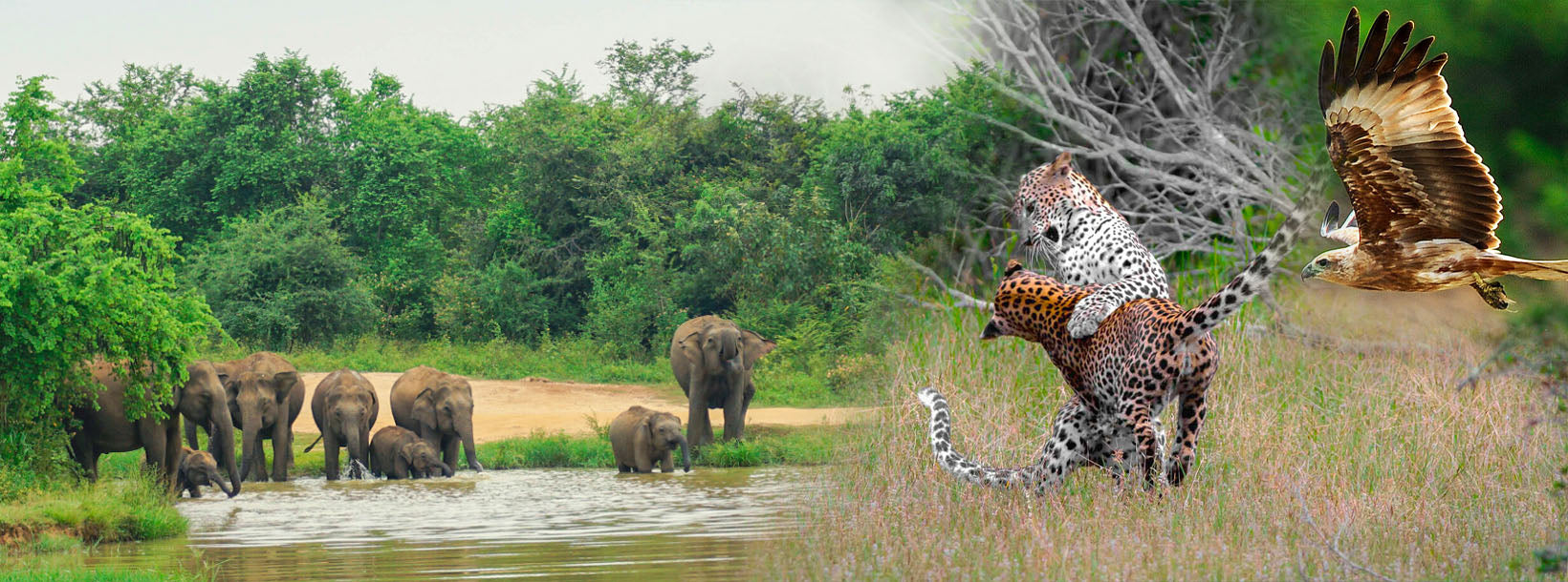De fjorton vilda livsparkerna i Sri Lanka är fristad till 86 olika arter av däggdjur samt fåglar och reptiler. Stora besättningar av vilda elefanter utgör centrum för attraktion. Bland rovdjuren stjäl leoparden rampljuset. Bland de andra rovdjuren är lättja björn, sjakal och mongooser. Primater som vanliga Langurs, endemisk makak, lila inför bladapa och lurvig björn apa strövar mitt i skogen i enorma trupper.