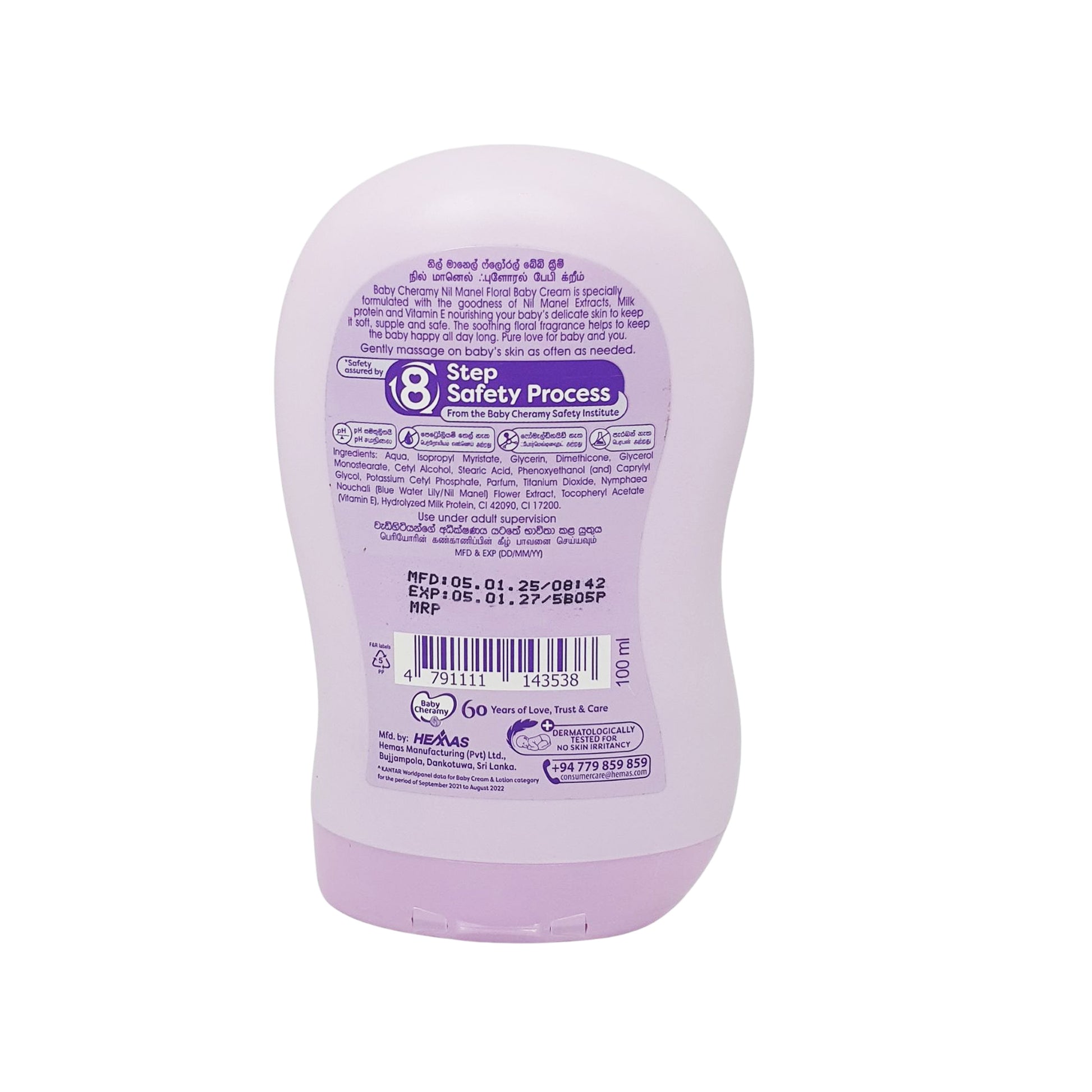 Vi presenterar Baby Cheramy Floral Baby Cream, en mild formel berikad med Nil Manel-extrakt, mjölk och E-vitamin för att ge näring och skydda ditt barns känsliga hud. Krämen återfuktar, lugnar och lämnar huden mjuk och smidig. Dess blommiga doft gör att barnet känner sig lyckligt hela dagen. Dermatologiskt testad och allergivänlig, den är säker för känslig hud