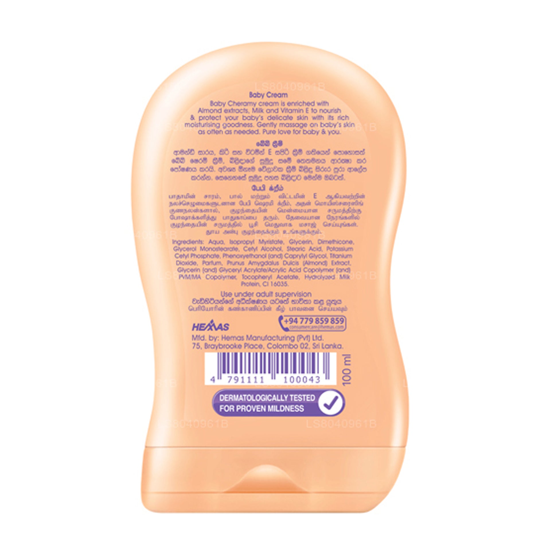(SKU: LS8040961B) Baby Cheramy Baby Cream är speciellt formulerad med godheten från mandelextrakt, mjölkprotien och vitamin E, som ger näring till ditt barns känsliga hud för att hålla den mjuk, smidig och säker.