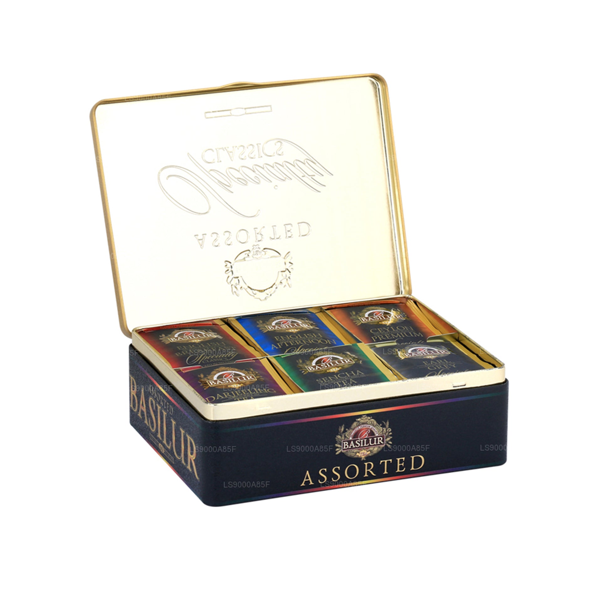 Basilur Specialty Classics “Assorted Specialty Classics – 60 Enveloped” (115g) offers a luxurious selection of some of Basilur’s most celebrated teas, presented in a beautifully crafted Signature tin caddy. This exquisite collection features 60 premium tea bags representing six exceptional varieties, each individually wrapped in recyclable envelopes to preserve maximum freshness, aroma, and taste. Inspired by the kaleidoscopic artistry Basilur is known for, this assortment delivers an authentic tea-drinking experience with flavours that evoke pure golden infusions, tantalize the senses, and uplift the soul. Perfect as an elegant gift or a refined addition to your own tea collection.