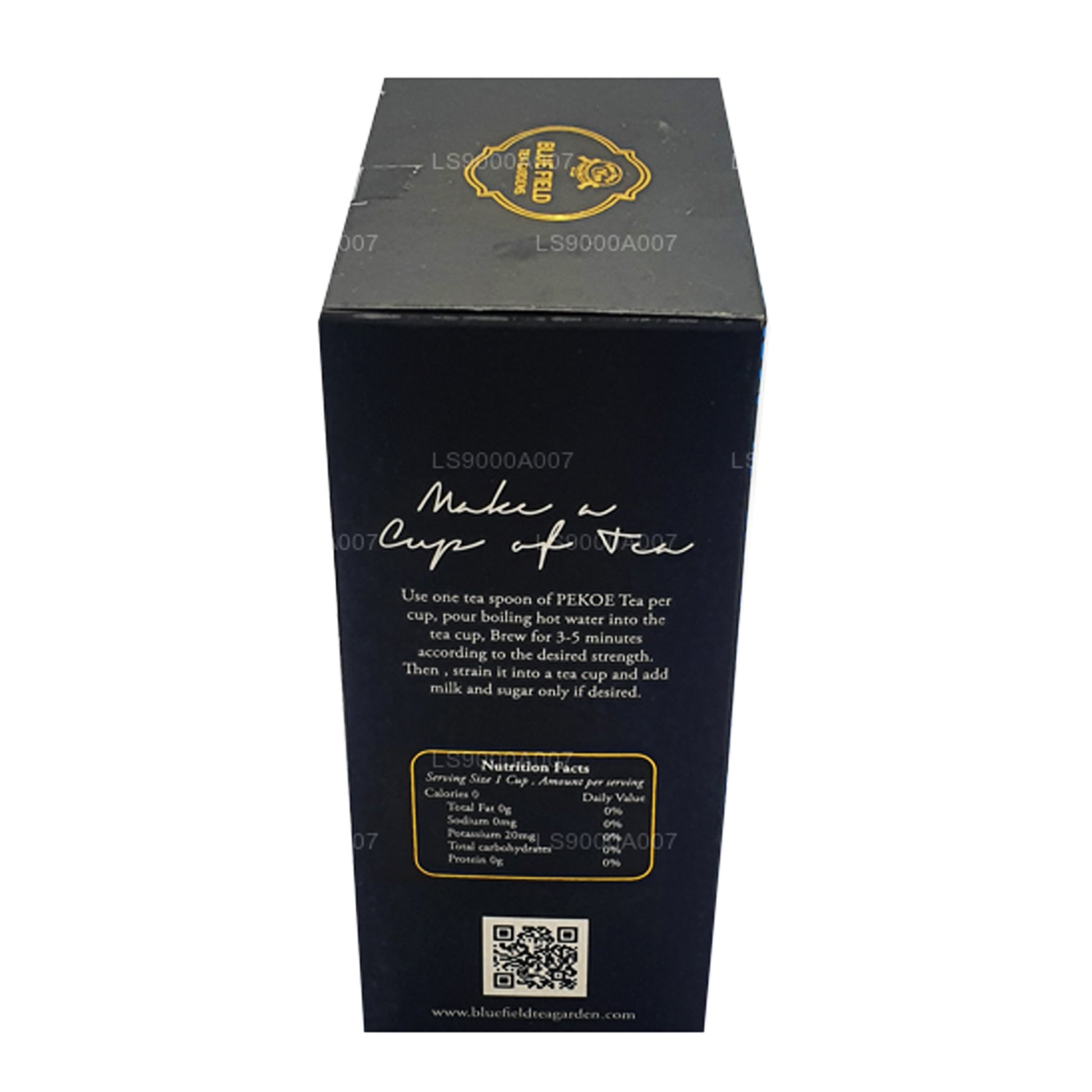 (SKU: LS9000A007) En lockig bladstil som ger en lätt kopp och delikat smak. Svart te PEKOE från Bluefield odlas på höga höjder över den vackra teplantagen i Ramboda. Vårt te produceras av händerna på traditionella teproducenter med traditionell, ortodox metod för svart teproduktion. Lejonlogotypen på produkten säkerställer att, Denna produkt är 100% ren Ceylon Tea från Sri Lanka.