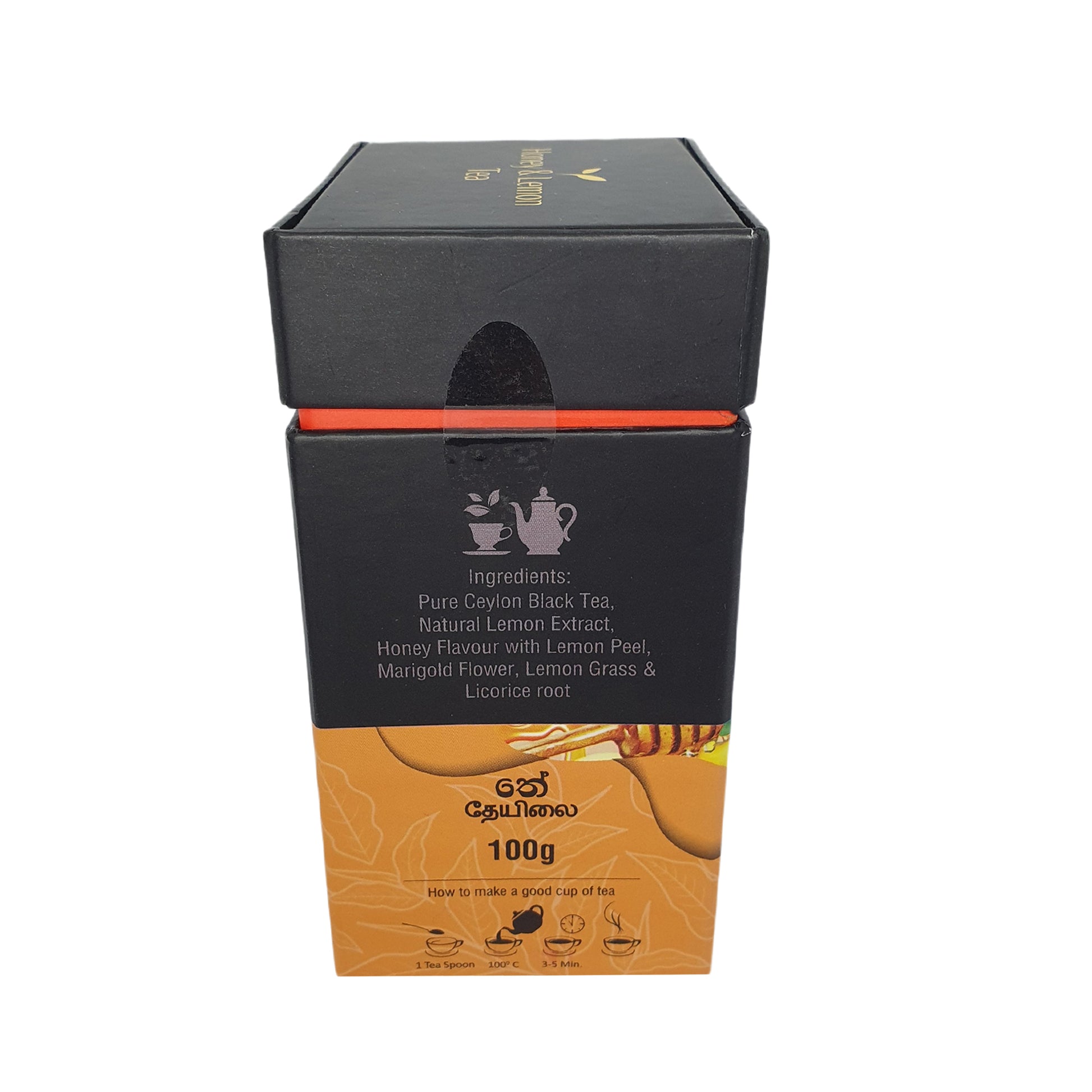 Bluefield Honung & Citronte (100g) erbjuder en vackert balanserad infusion gjord på rent Ceylon svart te berikat med naturligt citronextrakt och mild honungssmak. Blandningen är uppfriskad med livfullt citronskal, delikata ringblomsblad, uppfriskande citrongräs och mild lakritsrot, vilket skapar en ljus, aromatisk kopp med lager av citrussötma och en lugnande, behaglig avslutning. Varje klunk ger värme, klarhet och ett uppfriskande lyft – perfekt för avkoppling eller en revitaliserande paus. För den perfekta brygden, använd 1 tesked te, häll i vatten vid 100°C och låt dra i 3–5 minuter för att njuta av dess fulla smak och arom.