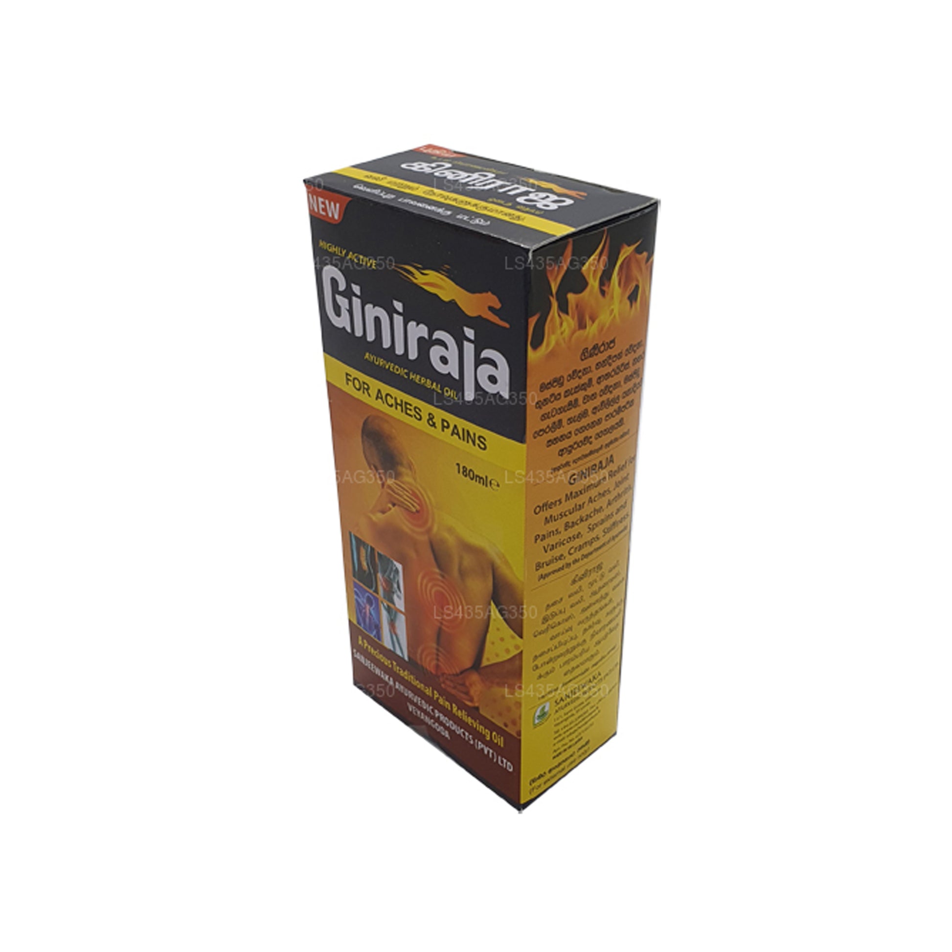 Ett helt naturligt botemedel känt för sin effektivitet för att lindra smärta och obehag, Chandanalepa Giniraja Pain Relieving Herbal Oil är en produkt som har formulerats med traditionella ayurvediska tekniker och ett speciellt recept. Denna olja ger maximal lindring för ledvärk, muskelvärk, ryggsmärta, stukningar, blåmärken, stelhet, kramper och till och med åderbråck. Det kan också erbjuda lindring från olika inflammationer.