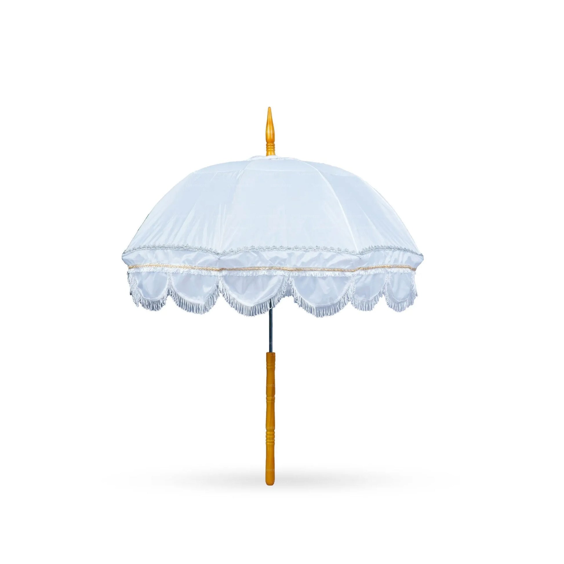 Siyarata White Pooja Muthu Kuda is a beautifully crafted ceremonial umbrella made from high-quality taffeta fabric, designed for religious and cultural occasions. Its elegant white finish, adorned with decorative details, symbolizes purity and devotion, making it ideal for temple offerings, processions, and special pooja rituals. Lightweight yet durable, this umbrella combines traditional craftsmanship with refined aesthetics, ensuring both spiritual significance and graceful presentation.