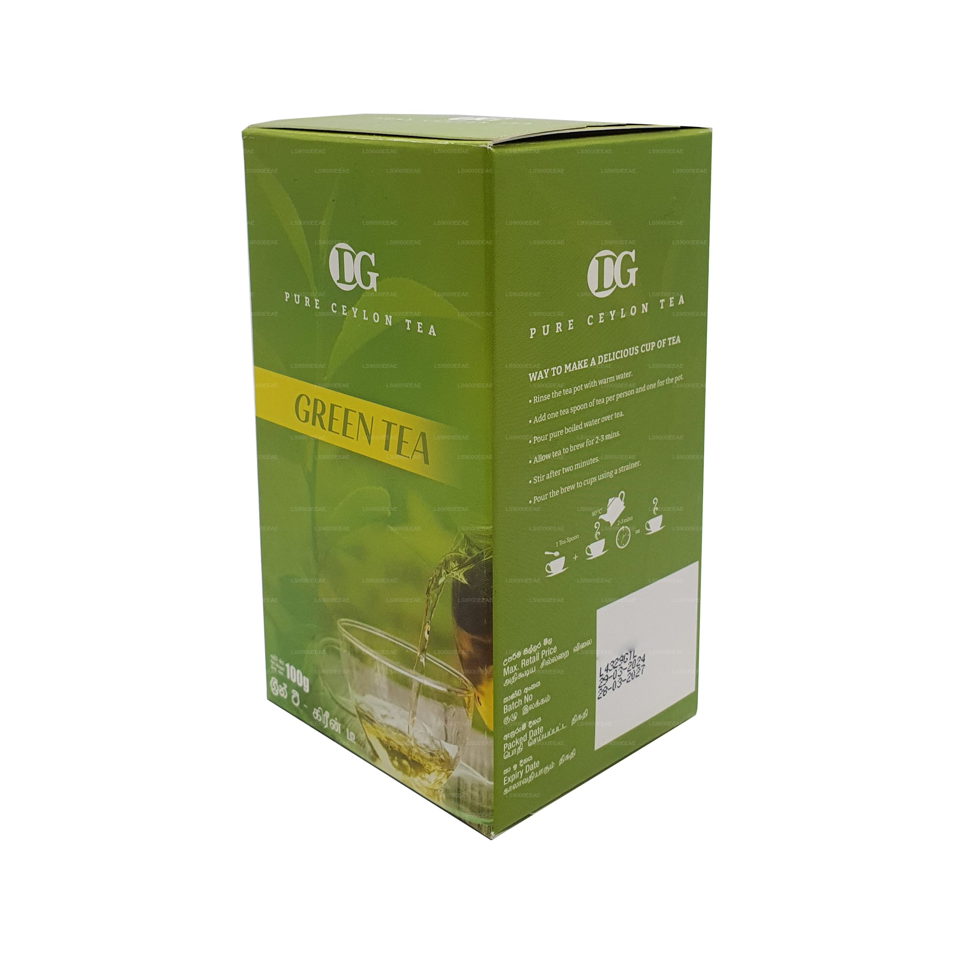 (SKU: LS9000EEAE) DG Labookellie Grönt te (100g) erbjuder den finaste Ceylon grönt teupplevelsen. Dessa tepåsar kommer från Labookellie Tea Estate och fångar essensen av Sri Lankas tekultur. Detta gröna te är känt för sin rena och uppfriskande smak och är mångsidigt och hälsosamt, vilket gör det perfekt för alla tider på dygnet. Med 25 tepåsar per paket är det ett bekvämt och tillgängligt sätt att njuta av Ceylon grönt te i din egen takt