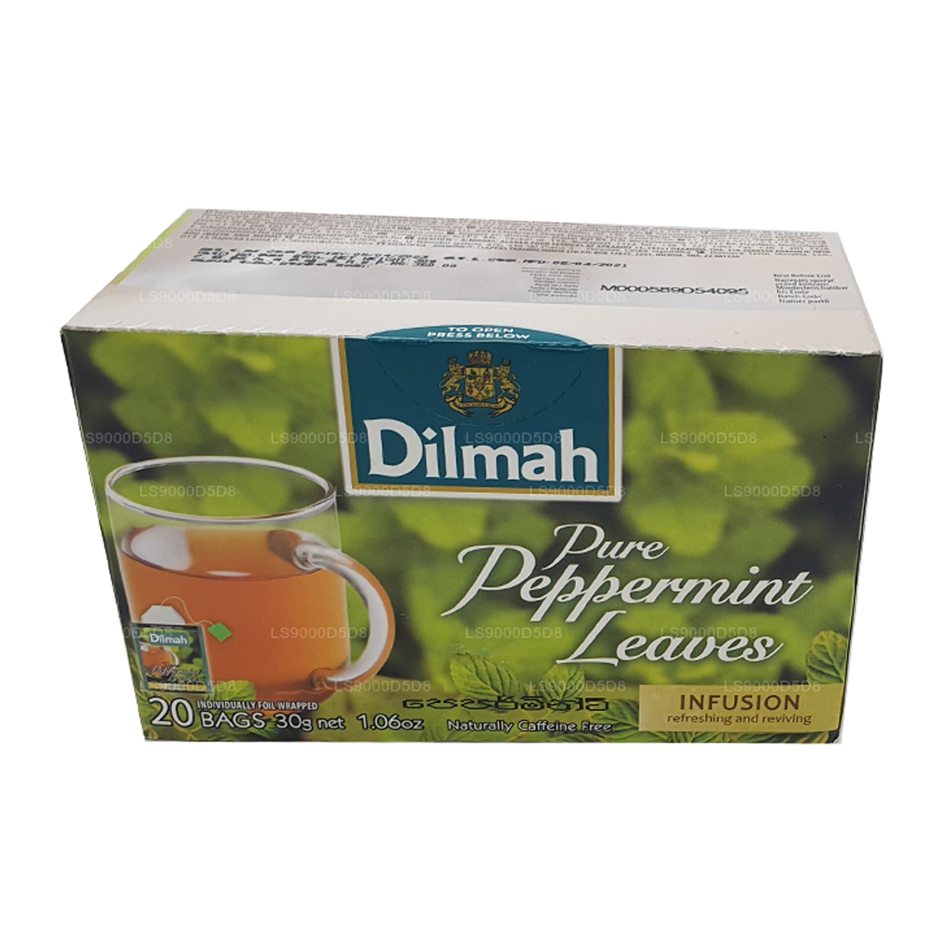 (SKU: LS9000D5D8) Dilmah är känt för att erbjuda ett exceptionellt utbud av teer som åtnjuts över hela världen medan det finns något att behaga varje humör. Pepparmynta har alltid betraktats som en uppfriskande dryck medan Dilmahs pepparmyntsblad är en infusion som har tillverkats för att bli naturligt koffeinfri. Denna infusion som är gjord av rena pepparmyntsblad, lämnar din smak renad samtidigt som den hjälper till med matsmältningen vilket gör den till den perfekta drycken att njuta av efter måltiderna. Mentolaromen ges av pepparmyntsoljan som finns i bladen och i sin tur