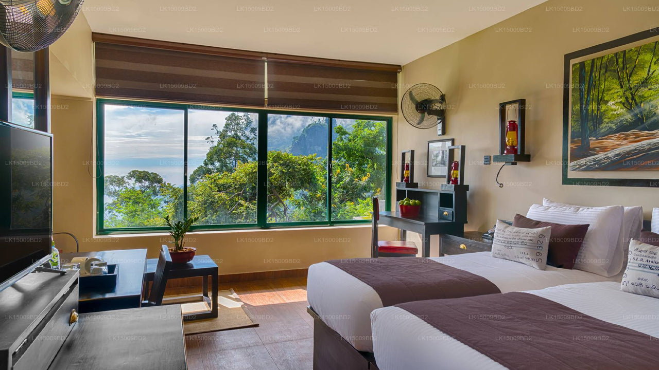 (SKU: LK1545B9DB) Upptäck den förtrollande lockelsen av EKHO Ella, inbäddat mitt i Sri Lankas bergsland. Omgiven av grönskande landskap och med utsikt över Ella Gap, vårt hotell erbjuder elegant boende med moderna bekvämligheter och fantastisk utsikt. Skäm bort dig med läckra rätter på vår restaurang, varva ner vid infinitypoolen, eller skäm bort dig själv på spaet. Med guidade utflykter till ikoniska landmärken som Ella Rock och Ravana Falls lovar EKHO Ella en oförglömlig flykt fylld med äventyr och lugn