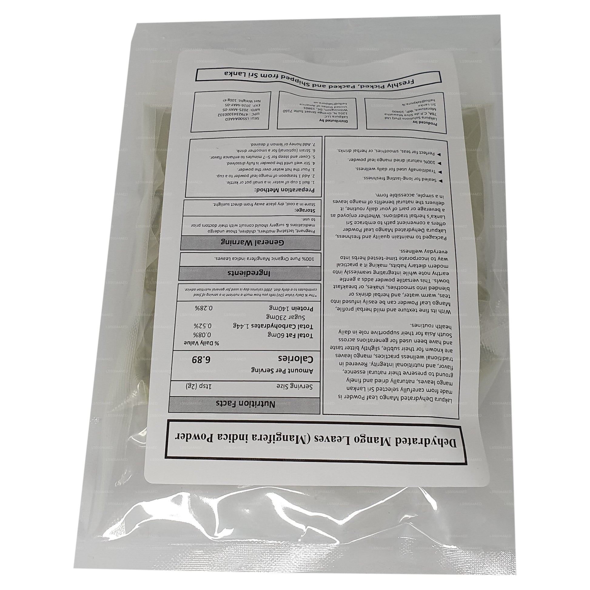 Lakpura Dehydrated Mango Leaf Powder