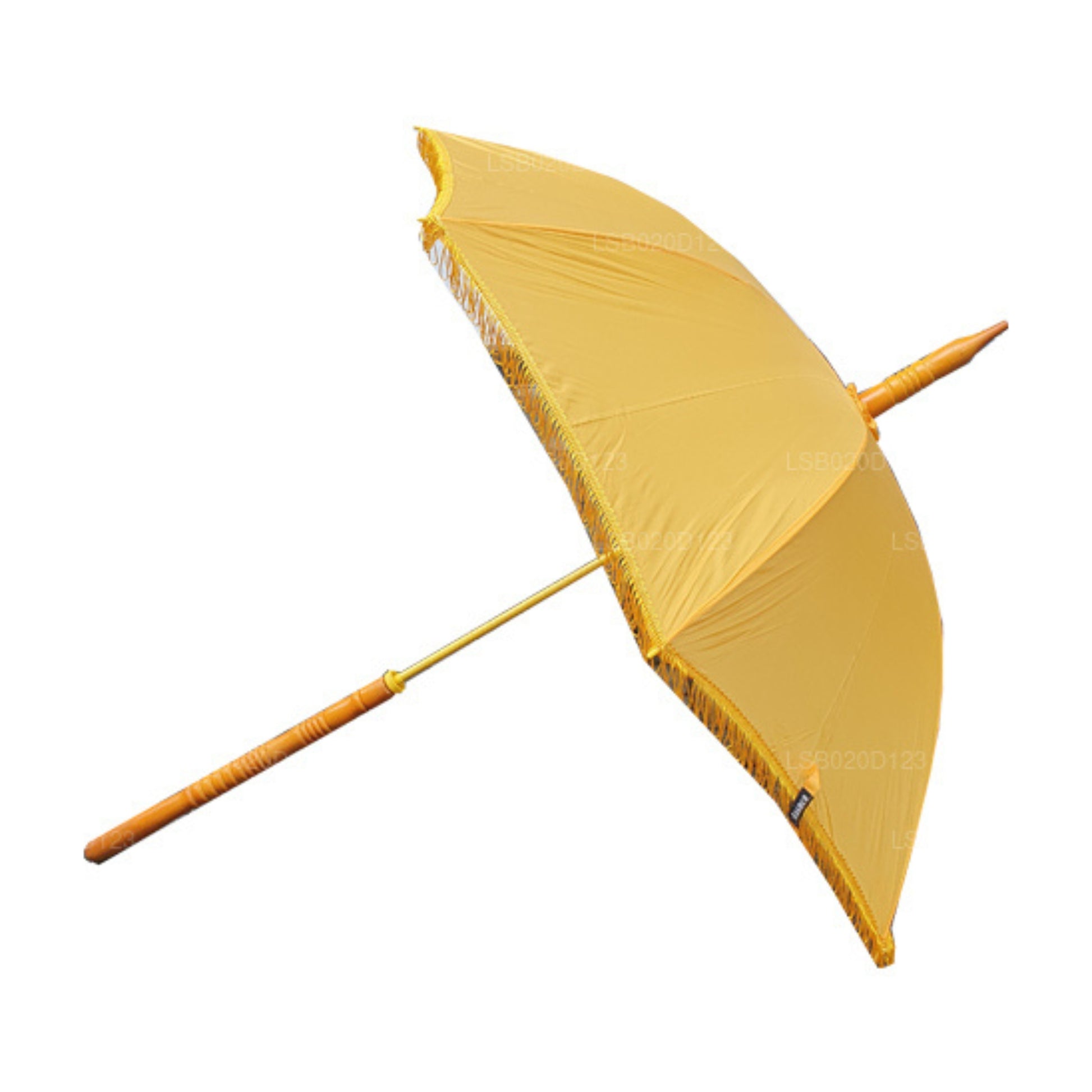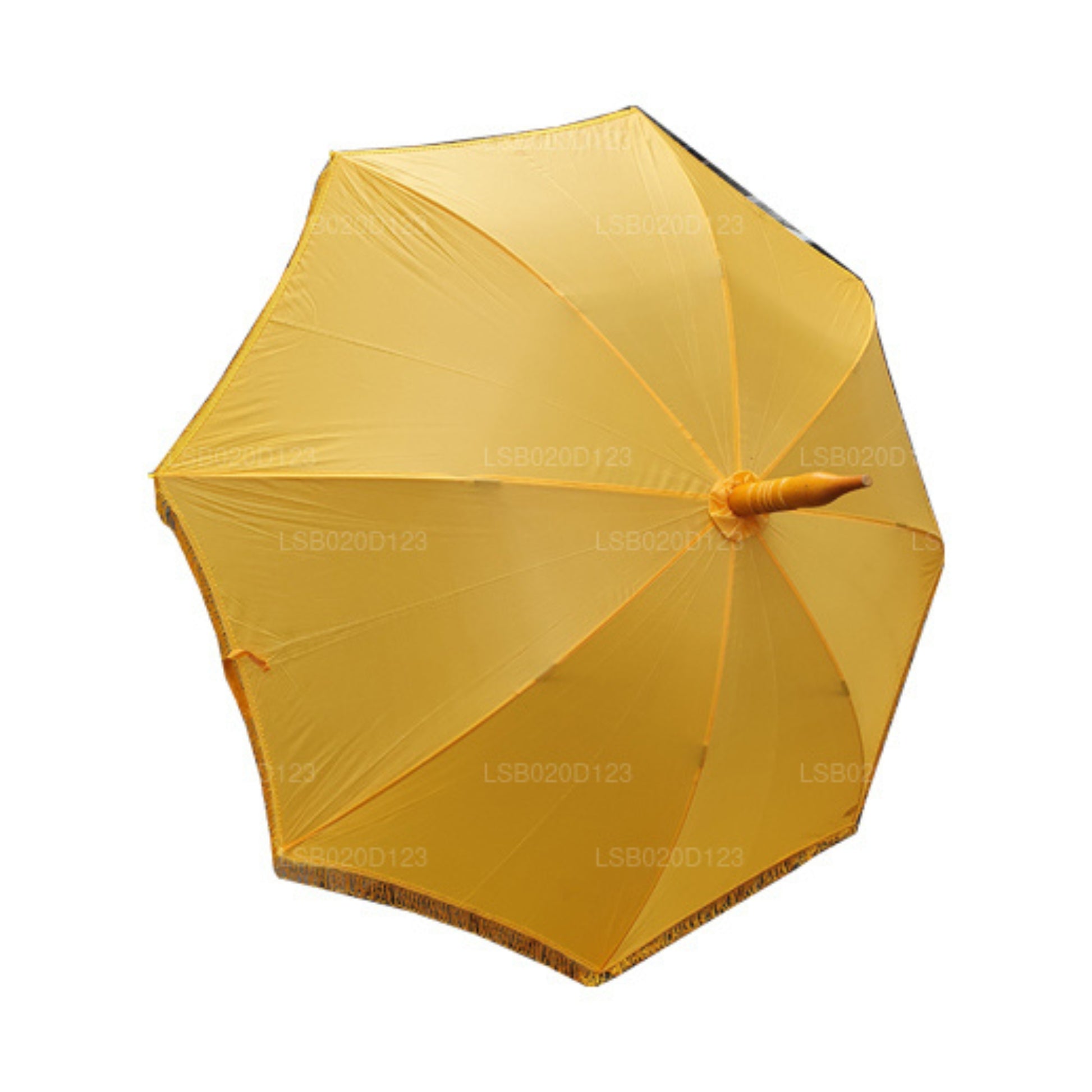 (SKU: LSB0202C9F) Det vanligaste syftet med ett paraply är att skugga människor från sol eller regn. i alla fall, det finns olika förklaringar i många kulturer angående användningen av paraplyer. Lakpura ”Muthu Kuda” används specifikt för att fungera som en sköld för buddhistiska munkar från naturens olika effekter. Enkla mönster finns tillgängliga medan vissa är broderade med trippel pagoder