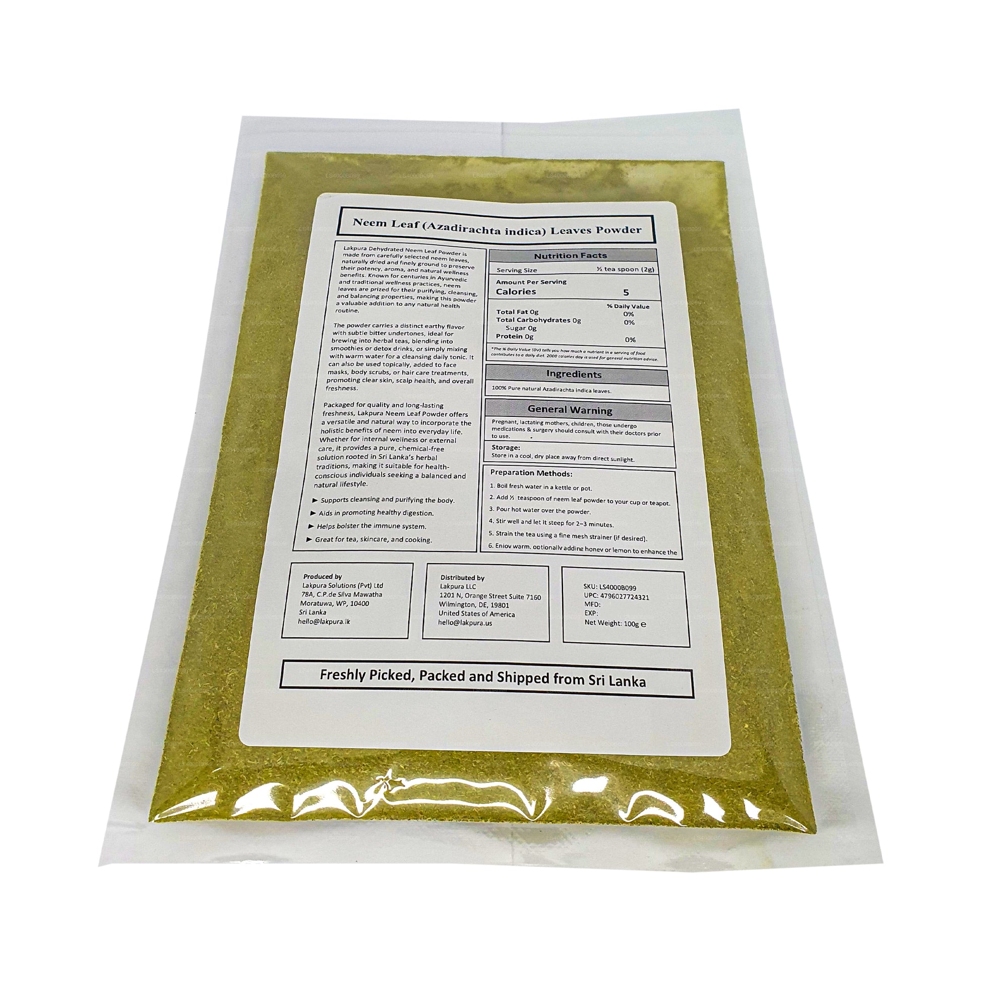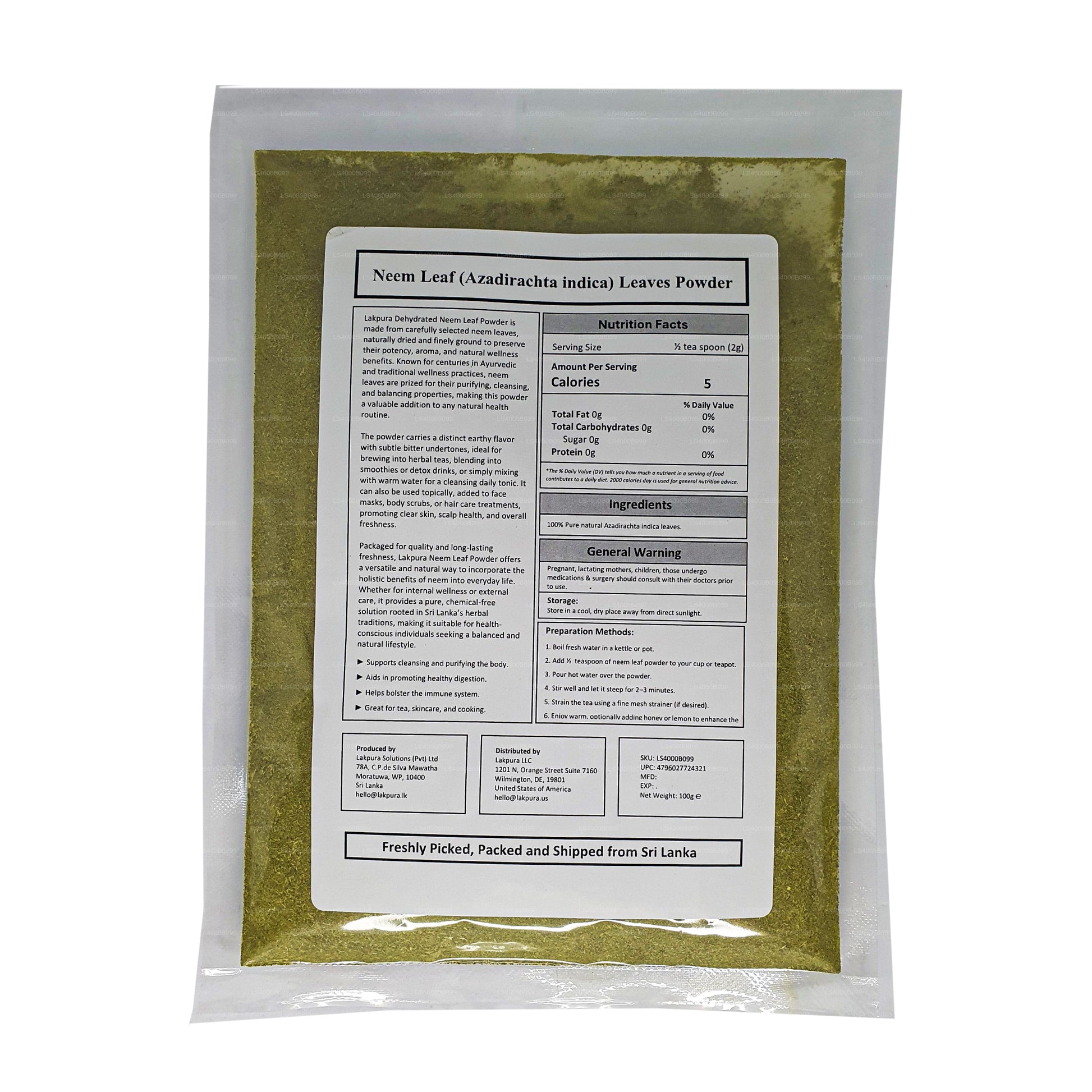(SKU: LS4000B099) Neem bladpulver är en integrerad del av ayurvedisk medicin, och det används för att balansera pitta och Kapha dosha och behandling av Vata-störningar. Neembladpulver renar blodet, bekämpar skador på fria radikaler, spolar ut gifter, behandlar insektsbett och