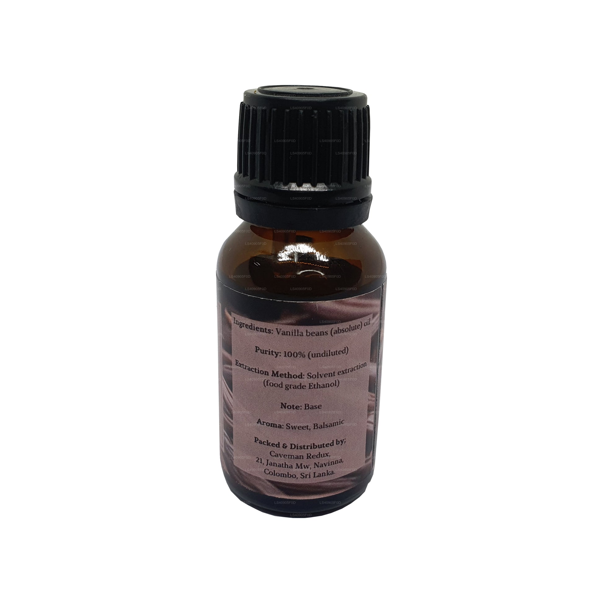 Vår eteriska vaniljolja extraheras från de torkade och härdade aromatiska Bourbon Vaniljskidor eller bönor från Sri Lanka. På Sri Lanka härdas vaniljbönor med naturliga härdningsmetoder. Vaniljodlare använder sin erfarenhet för att bota vaniljbönor som en kvalitetsprodukt. Den huvudsakliga kemiska föreningen i vanilj är Vanillin som betonar en smak och en rik lukt. Sri Lankas vanilj innehåller 1,50% vanillin som har en lägre nivå än andra regioner vilket resulterar i en mildare smak och en rökighet