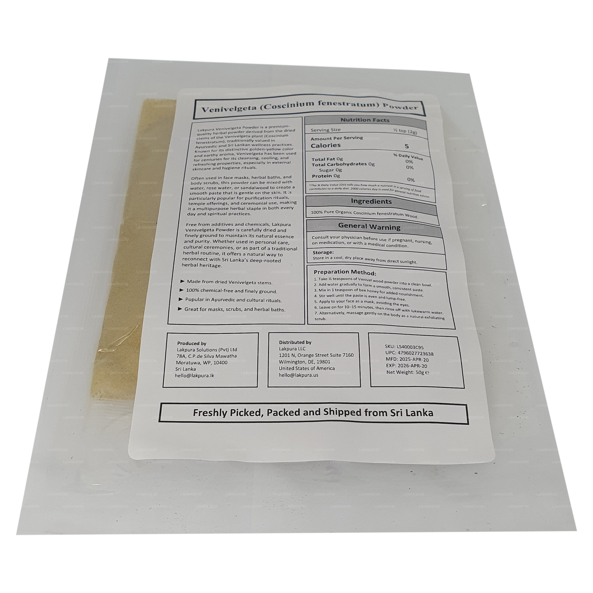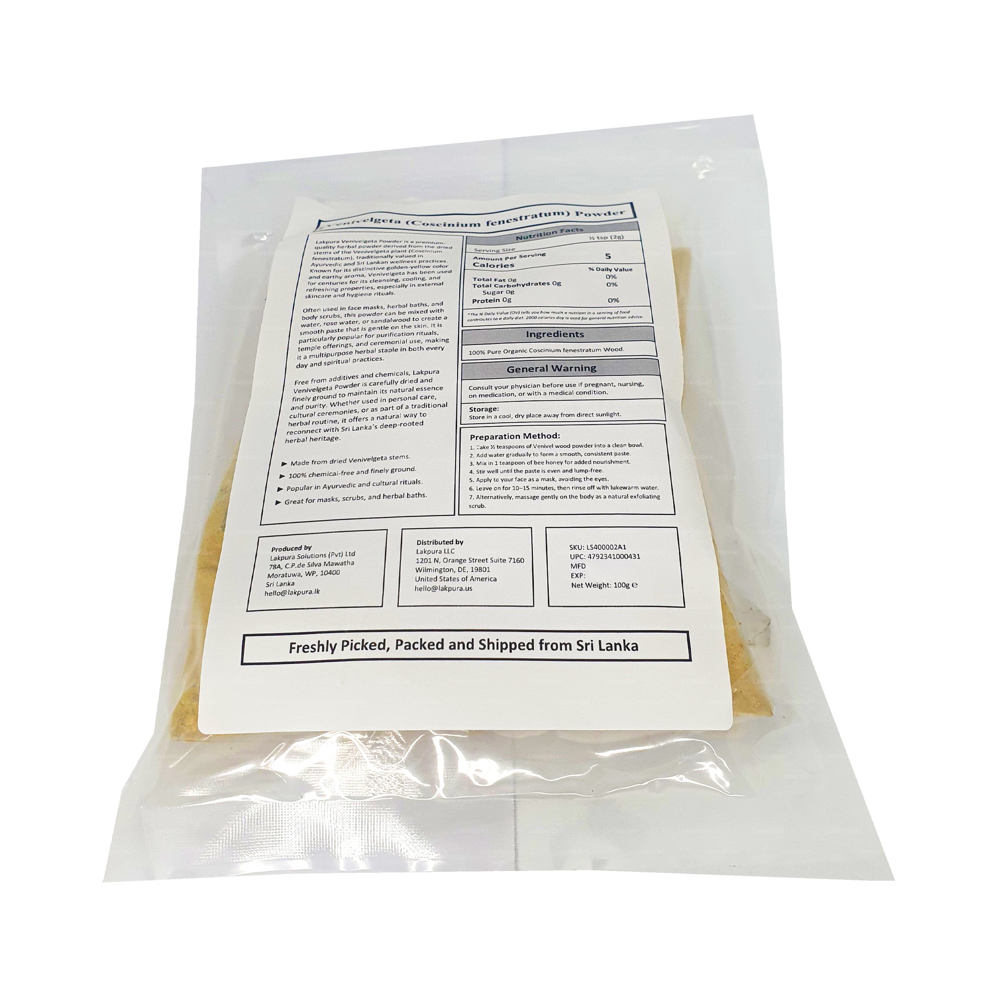 (SKU: LS1030DCA9) Venivelgeta/Tree Gurkmeja/Calumba Wood (Coscinium fenestratum) Pulver Känd som Venivel eller Venivelgeta i Sri Lanka, Atturam eller Kadari i Indien, Calumba Wood, Yellow Vine eller Tree Gurkmeja (engelska) i andra regioner i världen, Coscinium fenestratum är en viktig och sällsynt växtbaserad växt som används i traditionell medicin.