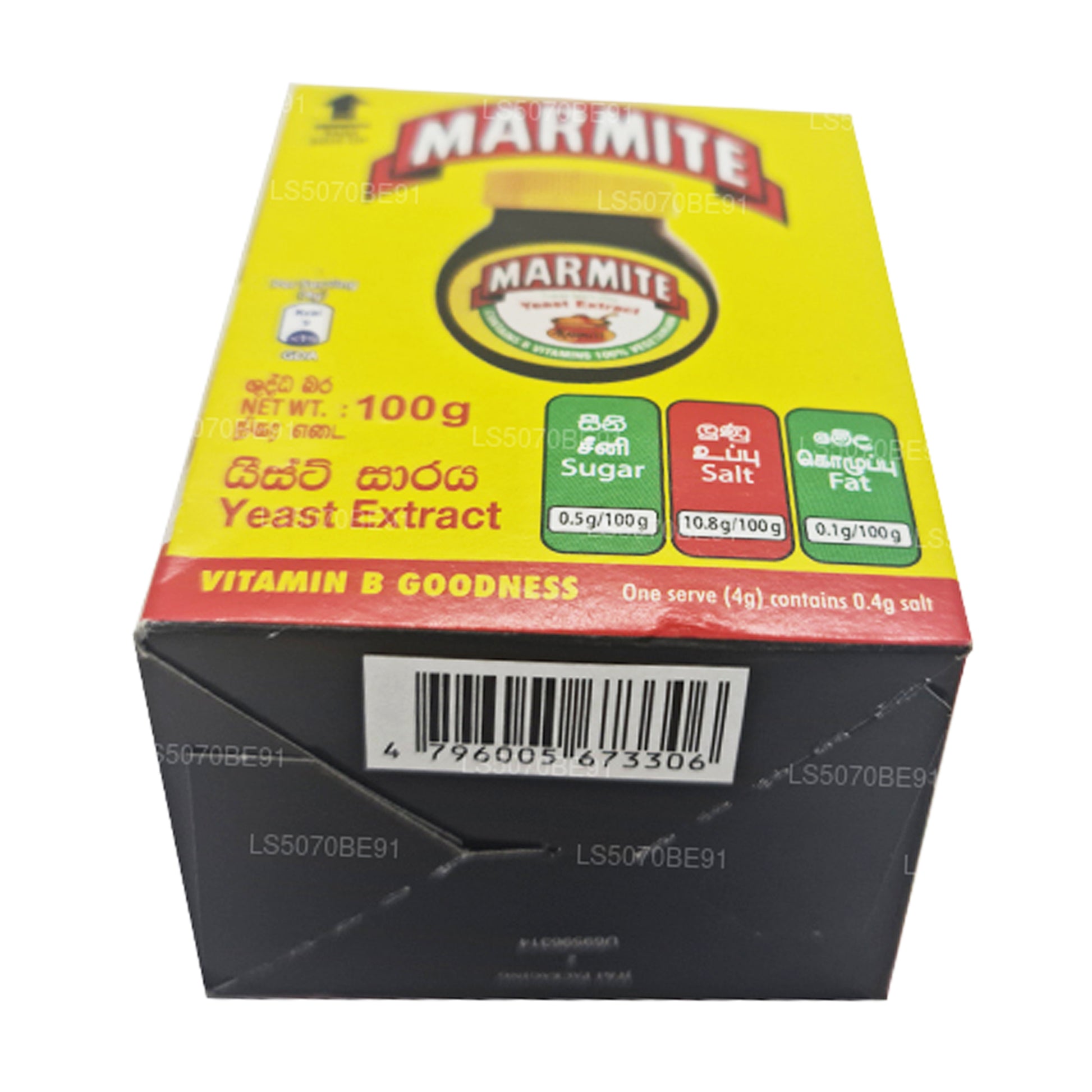 (SKU: LS5070BE91) Marmite gjord med jäst och vegetabiliskt extrakt är berikad med B-vitaminer för att göra all mat du äter näringsrik och utsökt. 100% Vegetarisk. Inga tillsatta konstgjorda konserverande ingredienser. Inga tillagda konstgjorda färger. Innehåller inget fett eller socker.
