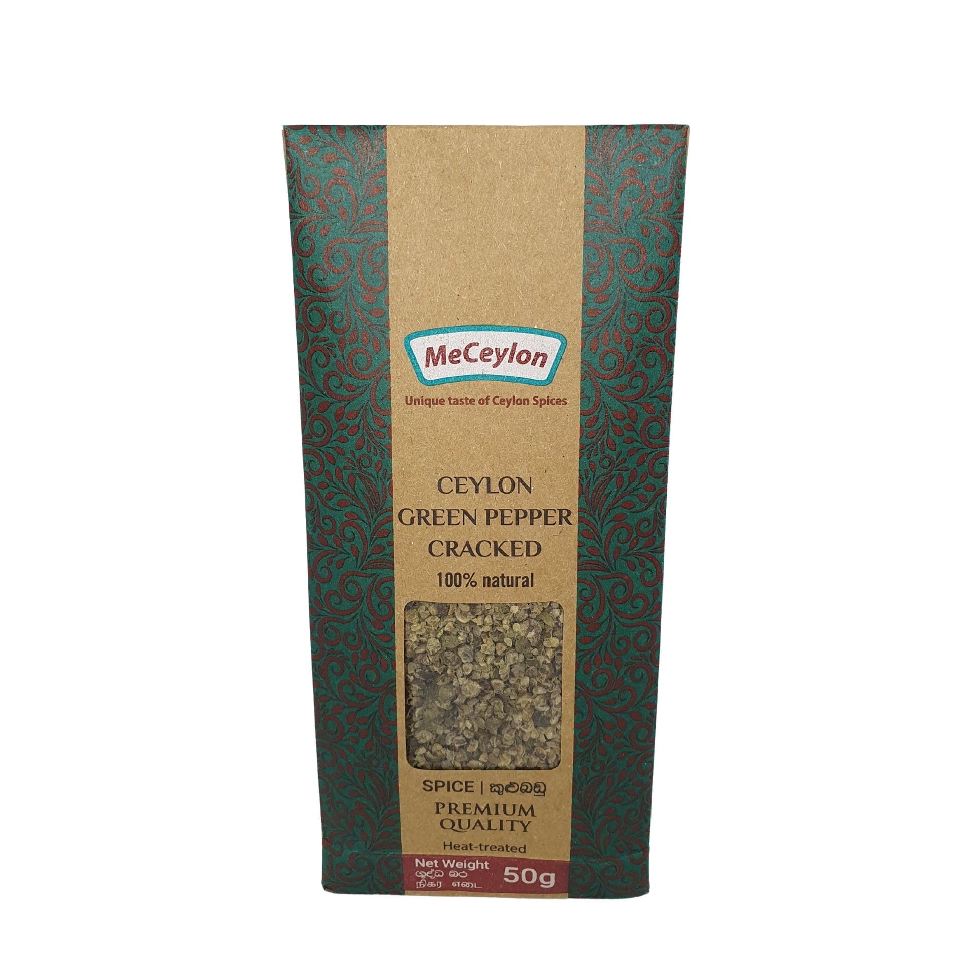 Me Ceylon Ceylon Green Pepper Cracked har omogna Piper nigrum bär som skördats tidigt för att bevara sin fräscha, skarpa smak och knäcktes sedan försiktigt för att frigöra aromatiska oljor utan att slipa till ett fint pulver. Mildare och mindre skarp än mogen peppar, den erbjuder skarpa, lätt fruktiga toner som förbättrar skaldjur, såser, sallader och lätta rätter. Producerad av MeCeylon med hållbara inköpsmetoder i Sri Lanka, ger denna knäckta gröna peppar ljus, nyanserad värme till ditt kök. Perfekt för matälskare och kockar som söker rena, aromatiska kryddor utan tillsatser