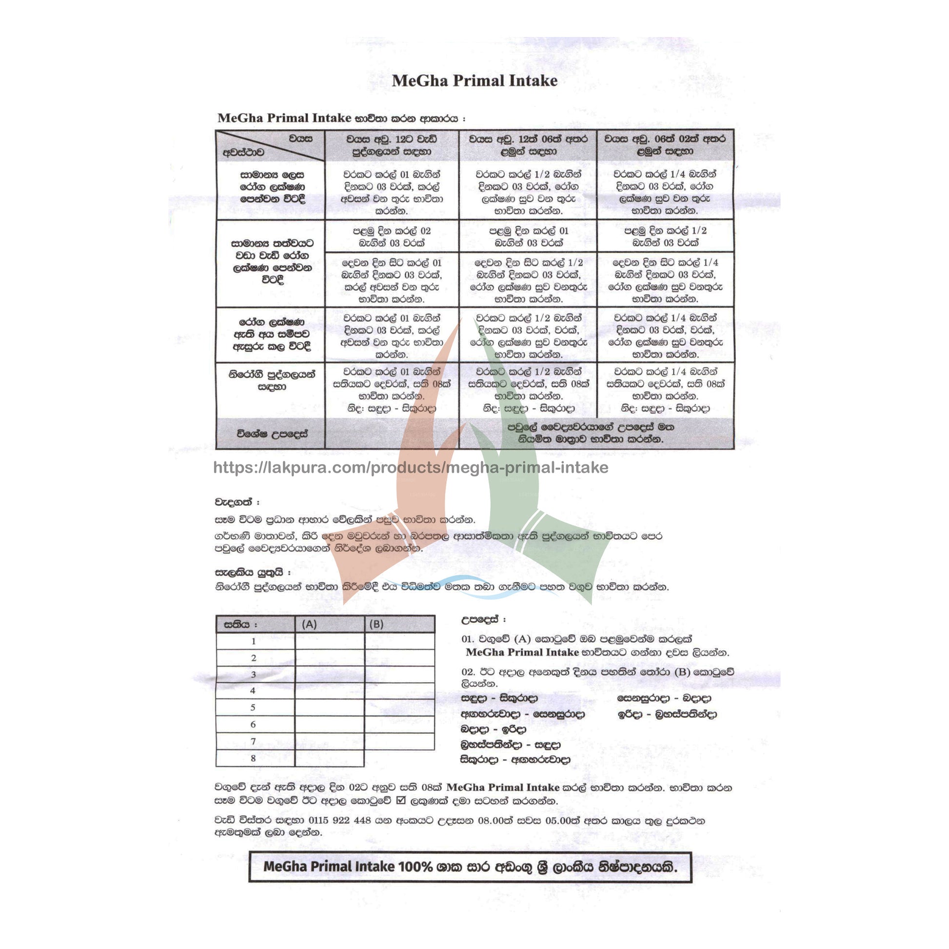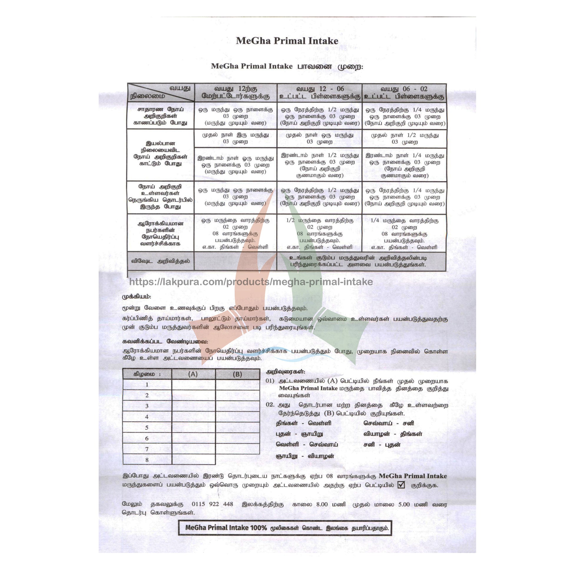 (SKU: LS41304A56) MegHa Primal Intake är ett 100% naturligt kosttillskott som uppfunnits för att förbättra immuniteten i människokroppen och innehåller inga konstgjorda färger, smaker och konserveringsmedel. Den tillverkas i Sri Lanka i en ISO 22000 och GMP-certifierad anläggning. MegHa Primal Intake är utvecklat med hjälp av ett varierat team av forskare och västerländska läkare som har lagt in timmar av forskning.