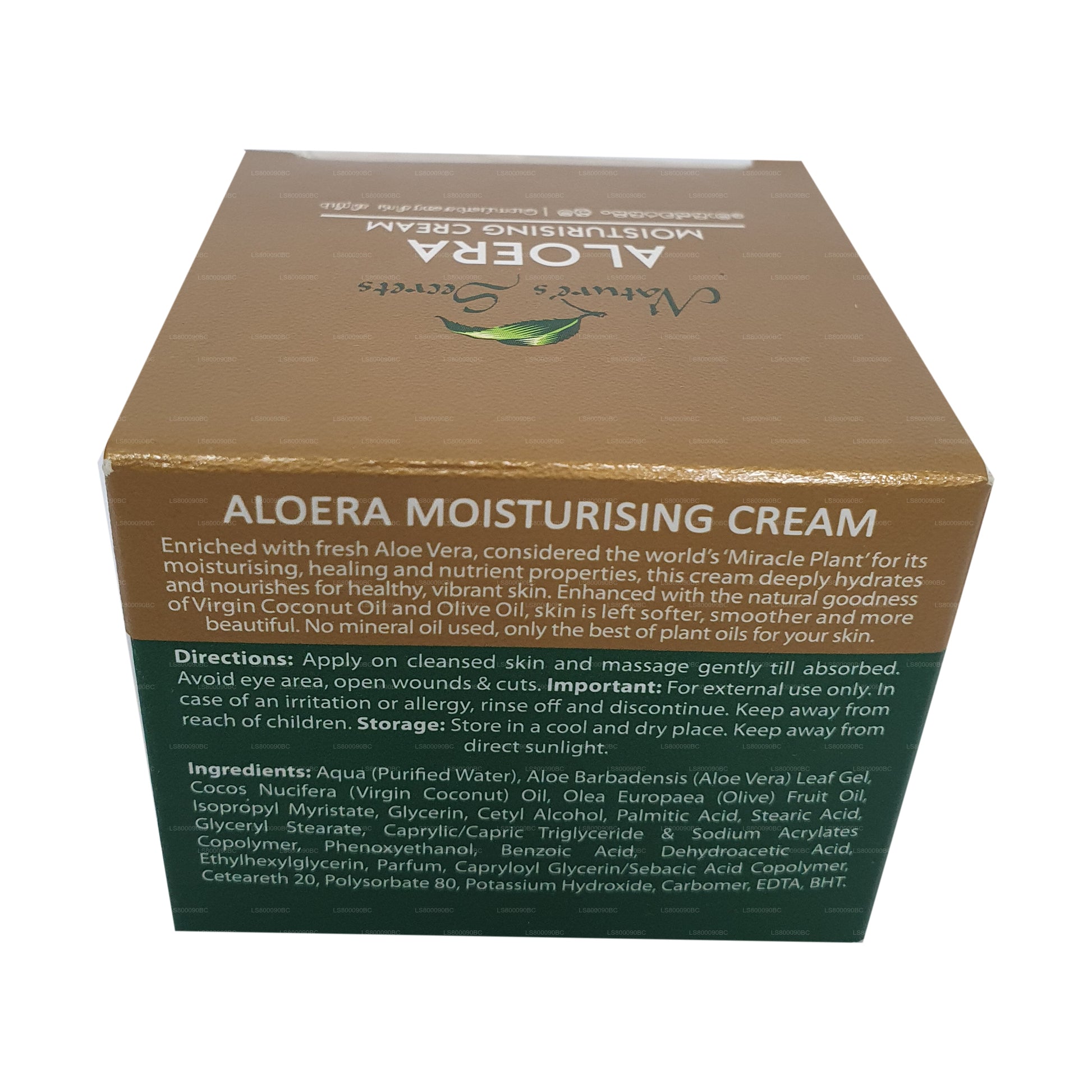 Upplev Aloe Veras naturliga kraft med Nature's Secrets Aloera Moisturising Cream, speciellt framtagen för att återfukta, läka och föryngra din hud. Berikad med färsk Aloe Vera, känd som världens ”mirakelväxt” för sina exceptionella återfuktande och näringsrika egenskaper, tränger denna kräm djupt in för att ge näring och återställa vitalitet. Formulan förstärks ytterligare med godheten från Virgin Coconut Oil och Olive Oil, vilket gör att din hud känns mjukare, mjukare och mer strålande. Fri från mineralolja använder den endast de renaste växtbaserade oljorna för optimal hudhälsa. Förvara på en sval, torr plats, borta från direkt solljus.