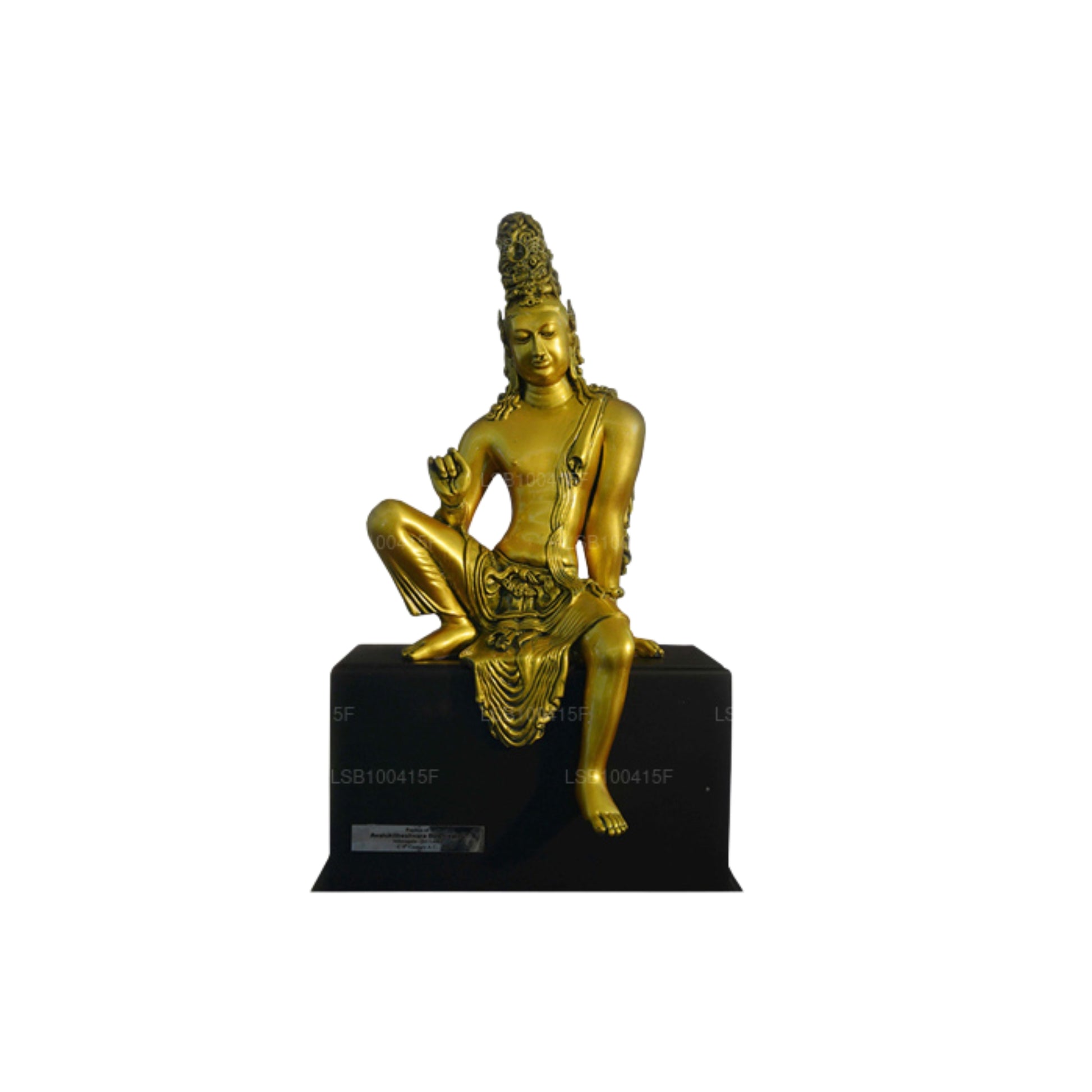 The hair of the Bodhisatva is styled in loose locks, and it portrays a beautifully plaited "jatamakuta" (headdress) that is inserted with valuable stones and bears a symbol of the Dhyani Buddha on it. The perfectly shaped body looks graceful, and it is well dressed in a simple ascetic costume. The eyes are crafted out of valuable gemstones. The Bodhisatva Avalokitheshvara's masterpiece stands out for its compassionate nature in all Buddhist art styles across the world.