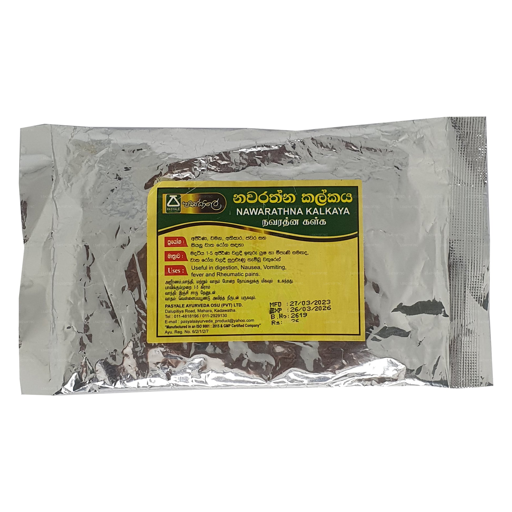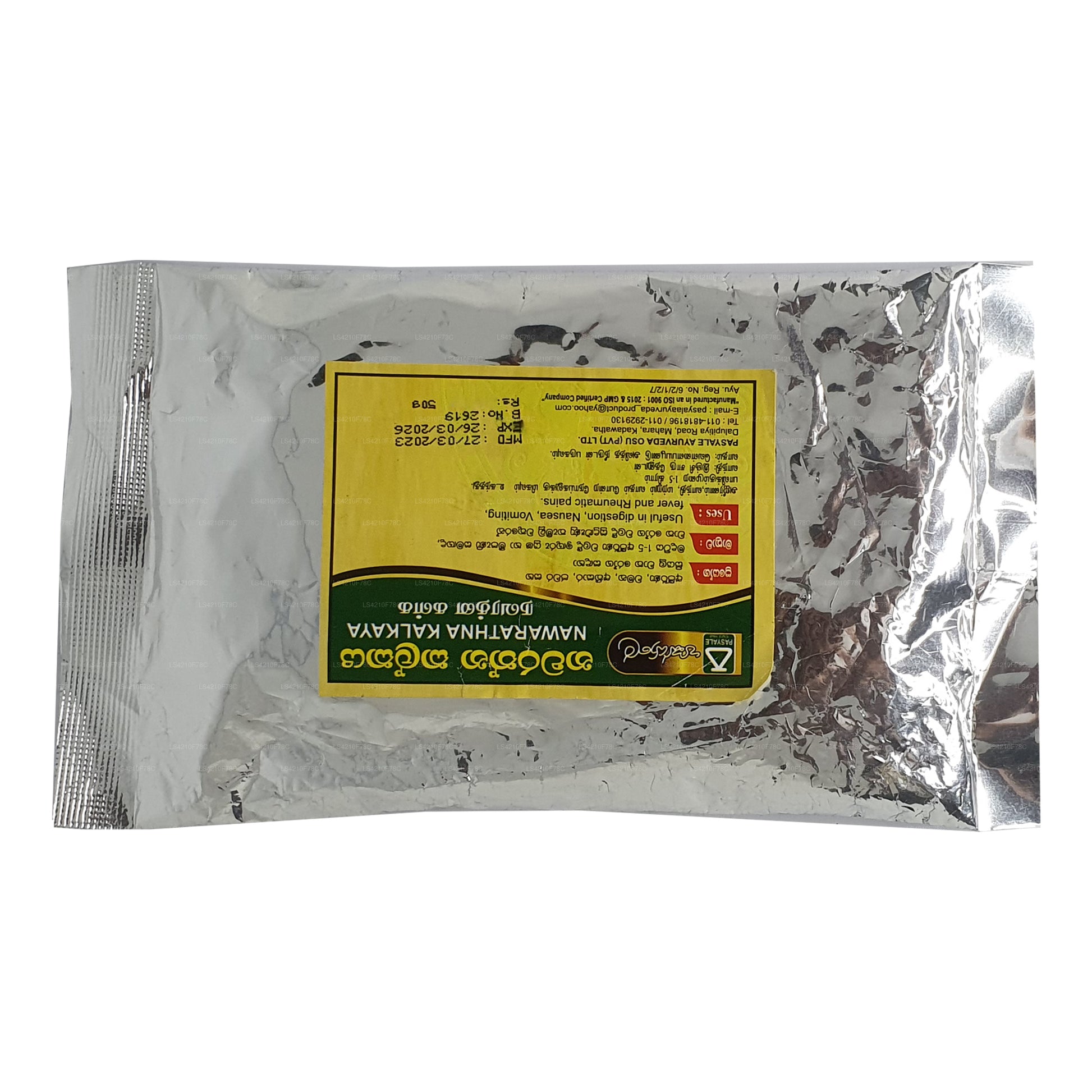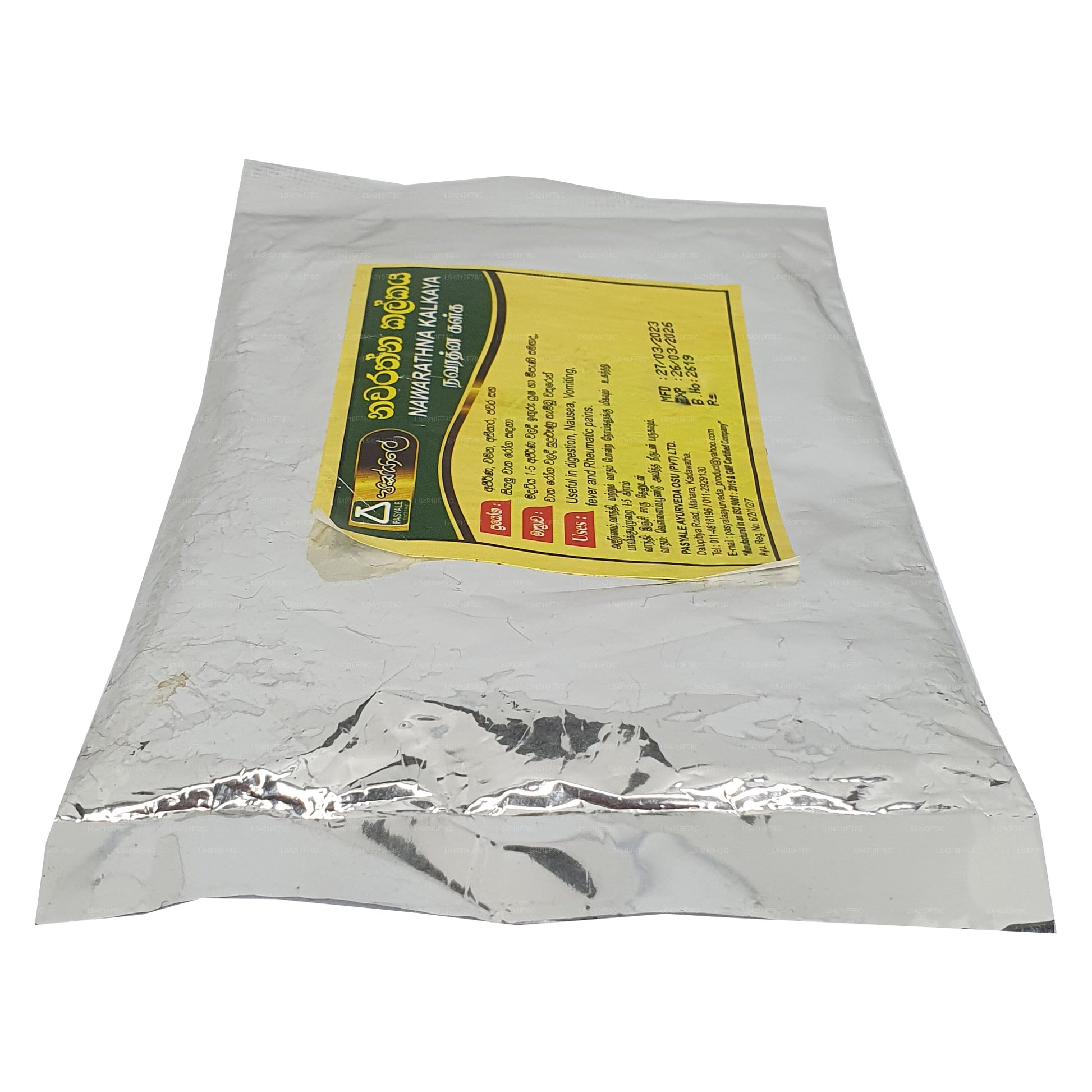 Ingredienser: Trachyspermum, (Carum Carvi) Asamodagam, Eugenia caryophyllata, (kryddnejlika) Karabu neti, Glycyrrhiza glabra (Wel mee), Picrorhiza glabra (Katukarosana), Nigella sativa (Kaluduru), Cuminum Cyminum (kumminfrö) Suminum Duru, bin honung (Mee pany)