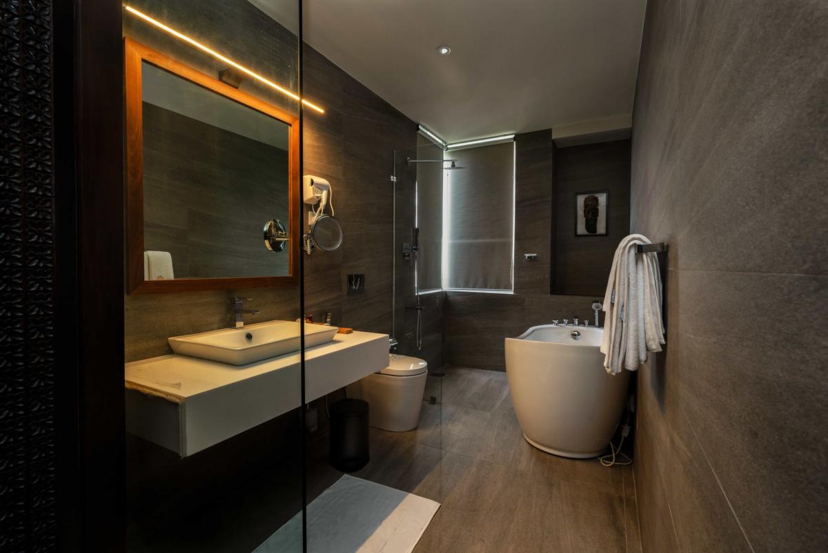 The property features well-appointed rooms and suites with clean, modern décor. Each unit includes comfortable bedding, en-suite bathrooms, air conditioning, and balconies or windows offering panoramic views of the city, valley, or lake.