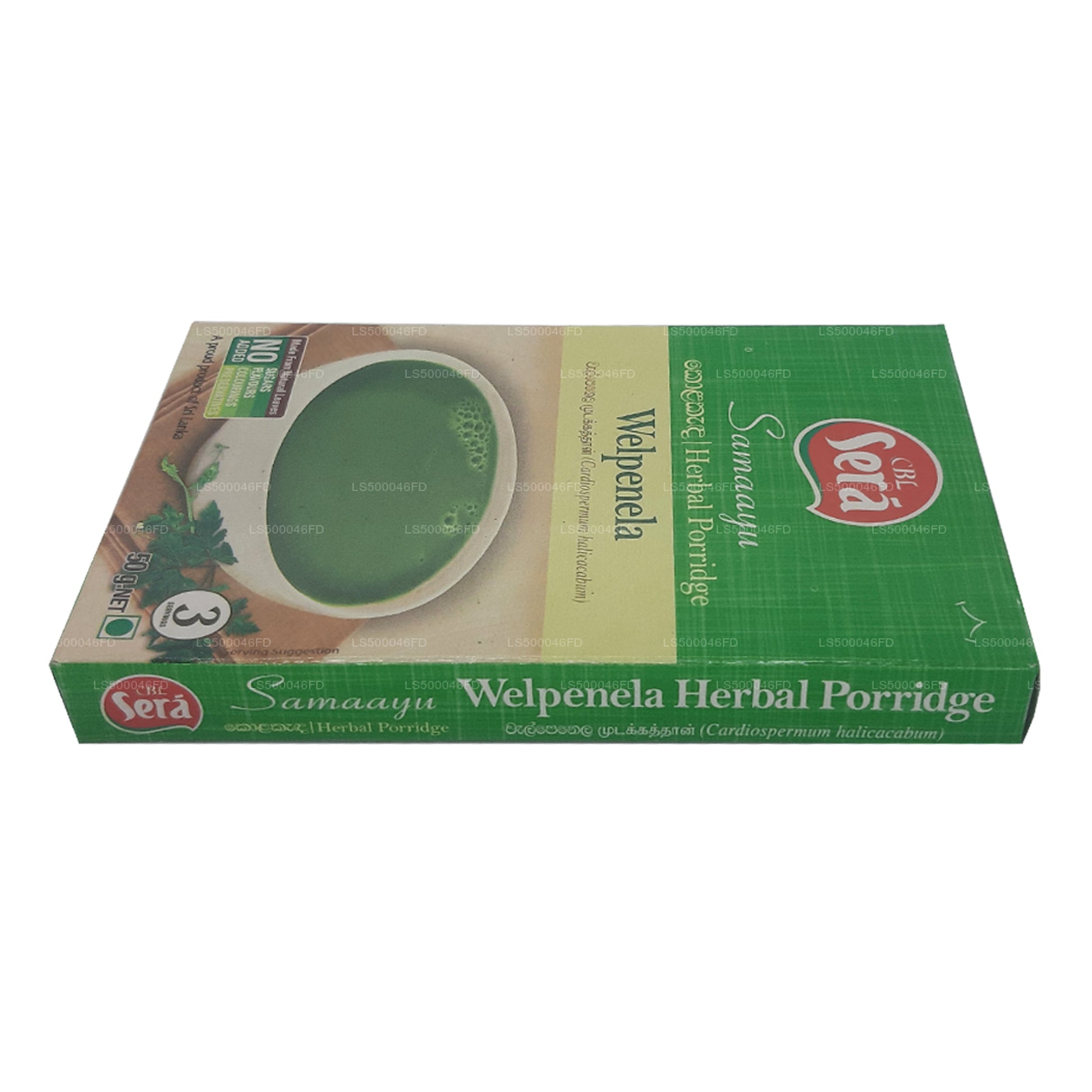 Herbal porridge, which is more commonly referred as Kola Kandha in Sri Lanka is a warm vegan traditional dish that usually consists of rice, coconut milk and extractions of loads fresh green leaves. This particular Sera Herbal porridge consists of the same ingredients with the addition of soya, garlic and ginger while the leafy green is Welpenela which is also known as the balloon plant. You have to simply mix the contents of the pack to three cups of water, bring it to a boil, add salt and pepper to taste and simply enjoy the hot nutritional goodness.