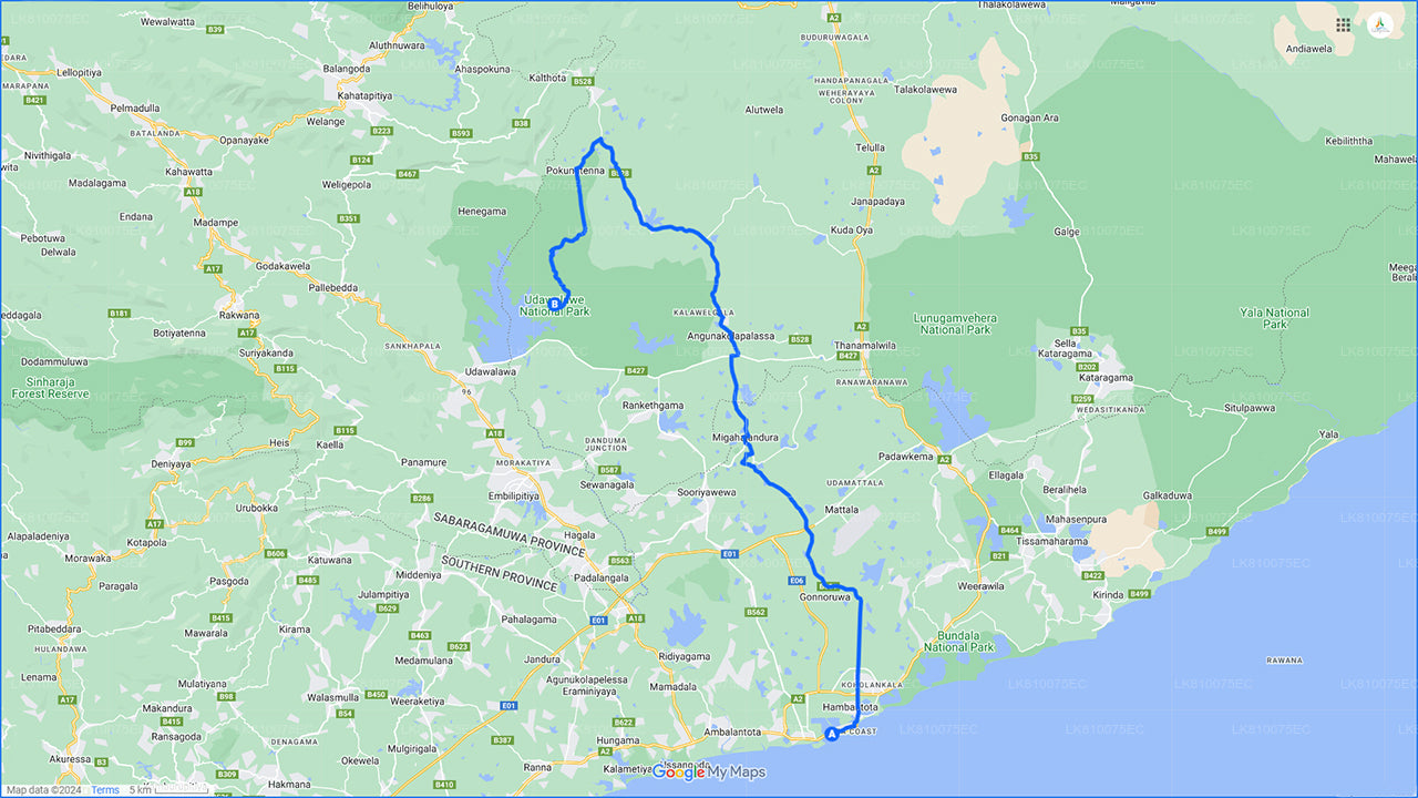 Du kommer att börja din turné från Hambantota Port kl 22.30. Din chaufför hämtar dig från Hambantota Port och kör dig till Udawalawe. Du når Udawalawe senast 13:00, fortsätt till Udawalawe National Park där du möter din safari-jeep för att åka på en härlig jeepsafari.