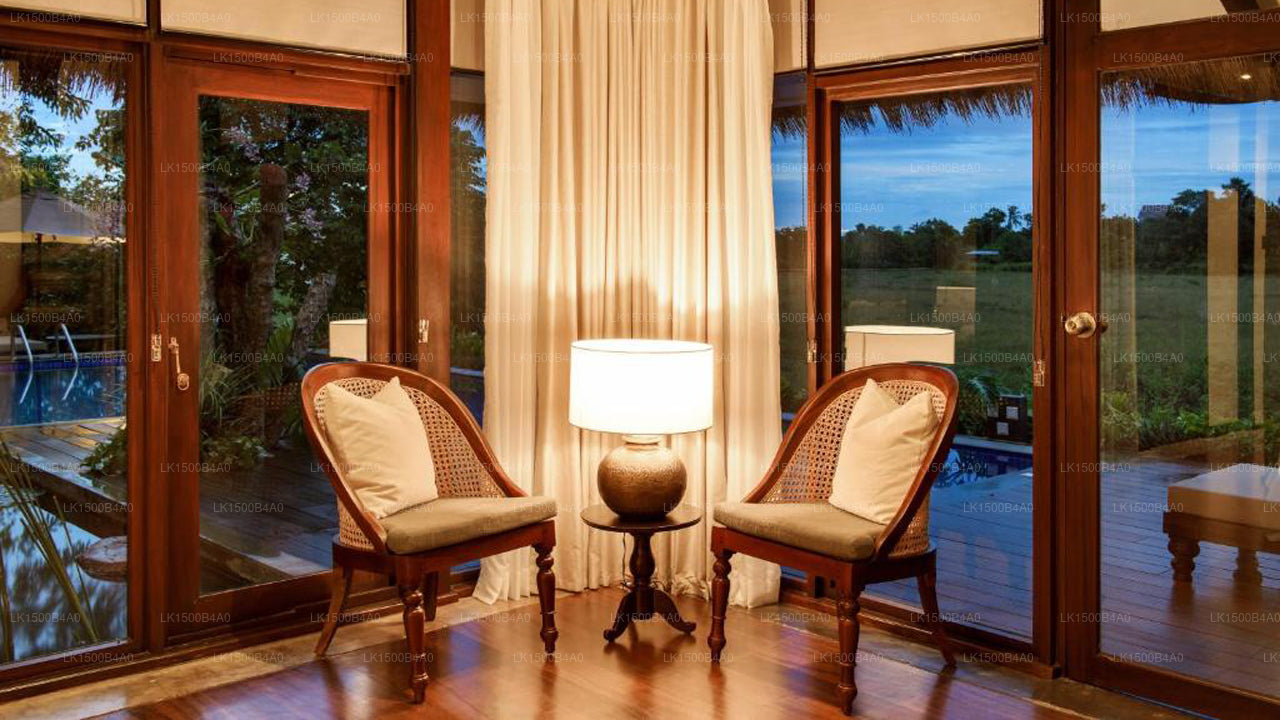(SKU:LK1500B4A0) Escape to another era at Ulagalla Resort. Immerse yourself in culture, history and nature at this enchanting sanctuary. 800 sq ft25 detached chalets with private plunge pools are scattered on 58 acres of Sri Lanka's finest land. Experience agrotourism on the fascinating paddy and vegetable fields of Sri Lanka. The historic architecture and the discreet placement of the chalets offer privacy and serenity. Enjoy our fully equipped gym, pool, sauna and archery stations; canoeing and kayaking are available on the lake. Go horseback riding through the fields for a unique experience at Ulagalla Resort.