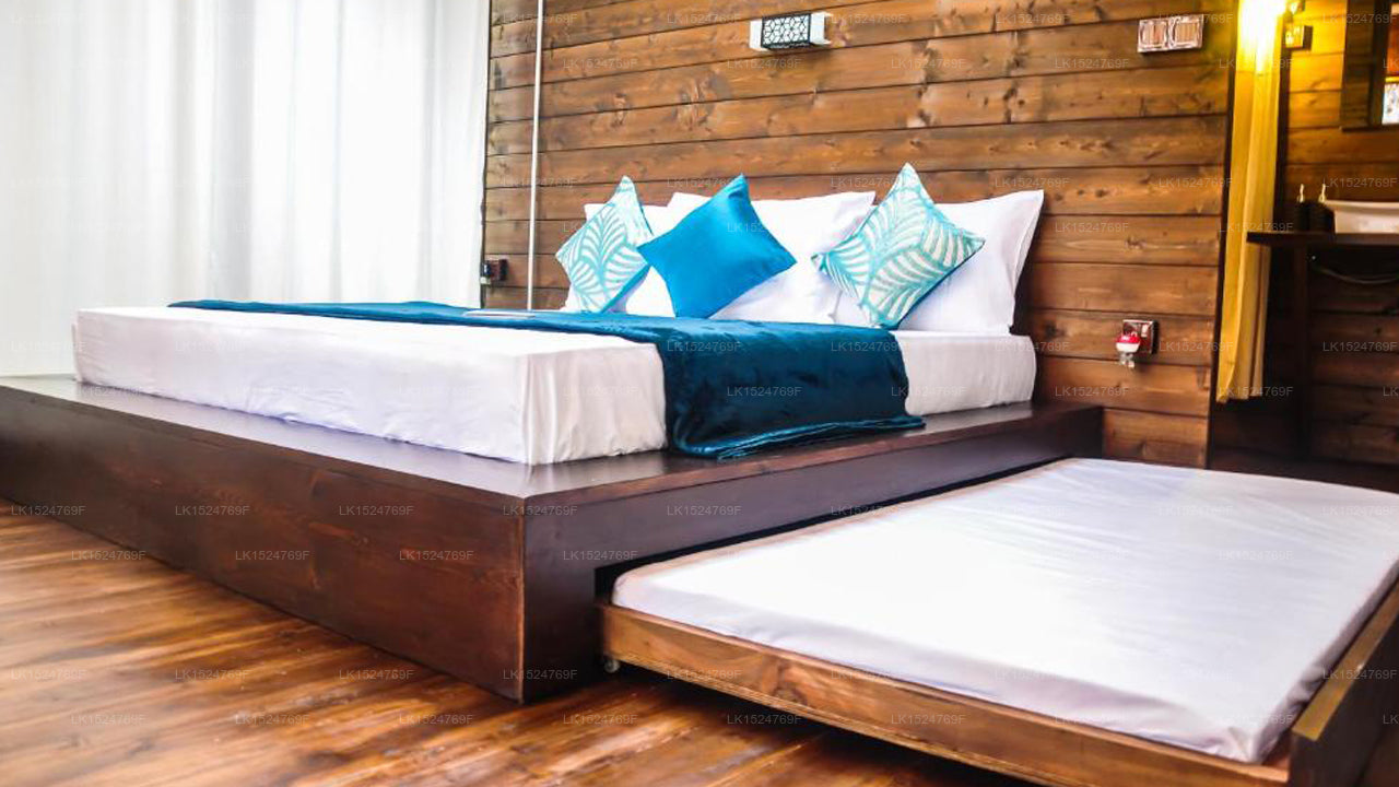 Accommodation:The villa features a cozy one-bedroom setup with wooden interiors, offering a warm and inviting atmosphere. It includes a comfortable double bed and a single bed, accommodating families or small groups. Guests can enjoy a private bathroom and a balcony with stunning views, making it an ideal retreat for relaxation and unwinding in nature.