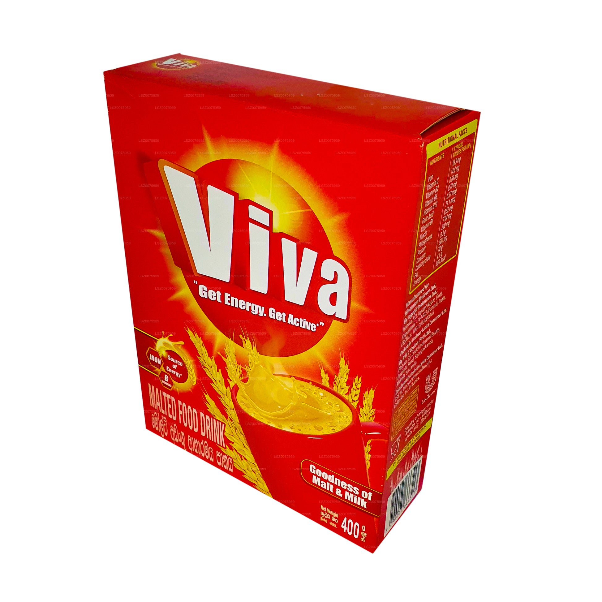 En mycket älskad maltad matdryck, Viva som är ett känt namn på Sri Lanka ger dig godheten av malt och mjölk i en påse. Viva erbjuder en omedelbar energiboost och lovar dig att vara aktiv hela dagen. Krämig och härligt smakrik, denna maltade matdryck består av många näringsämnen inklusive vitaminerna B1, B2, B3 C-vitamin, järn, kalcium och fosfor. Viva avnjuts blandat med din kopp Ceylon Tea vilket gör den tjockare vilket gör den perfekt för hela familjen att njuta av. Det rekommenderas att du använder en torr sked varje gång och förvarar innehållet i en lufttät behållare när du har tagit ut ur förpackningen.
