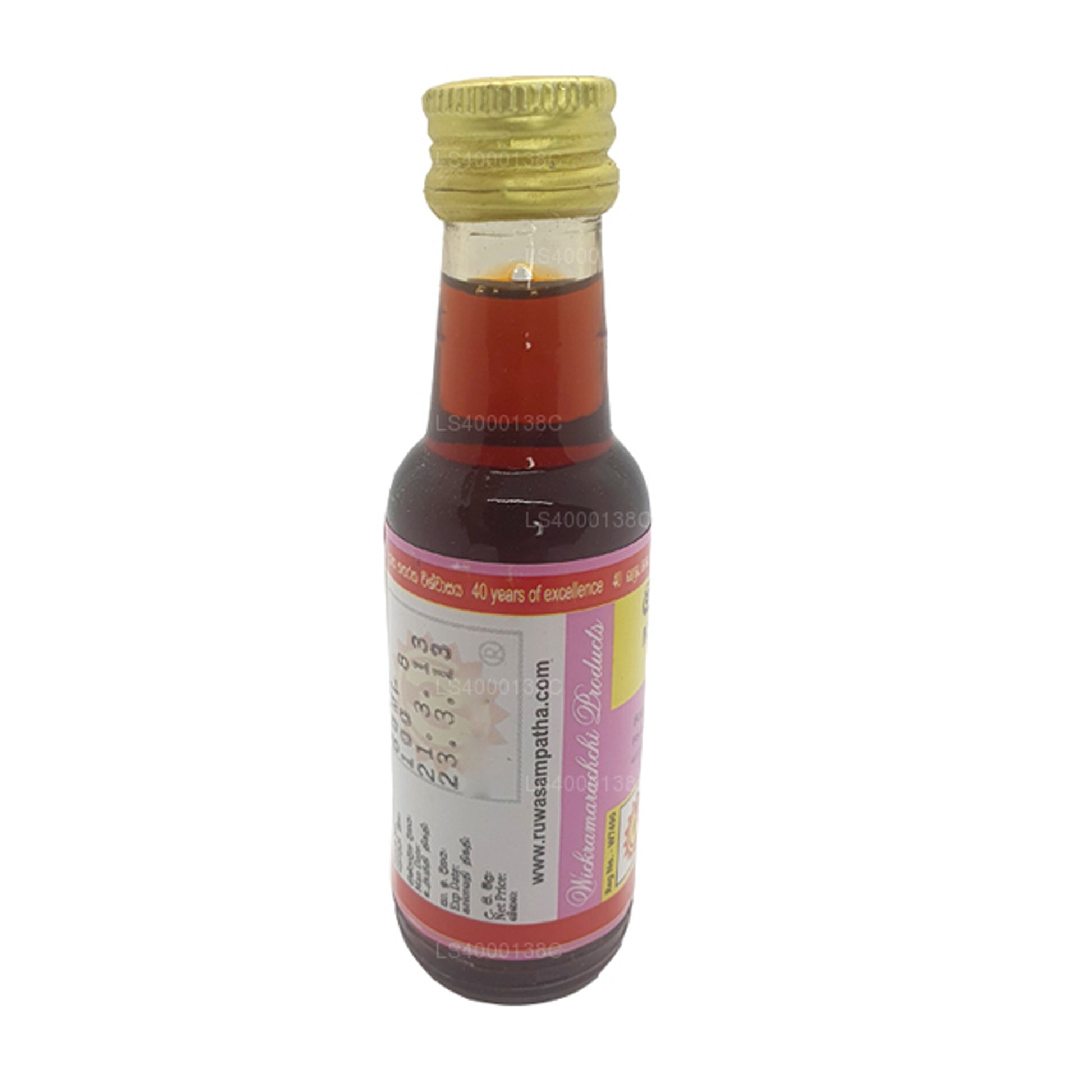 (SKU: LS400078A2) Wickramarachchi Labs Maha Siddartha Thailaya är en ayurvedisk oljeformulering producerad av Wickramarachchi Labs. Ayurveda är ett traditionellt medicinsystem med ursprung i Indien som betonar holistiskt välbefinnande. De specifika ingredienserna och användningarna av Maha Siddartha Thailaya finns inte i mina träningsdata. Ayurvediska oljor används dock ofta för massage, avkoppling och olika hälsofördelar. Wickramarachchi Labs är ett företag känt för att producera ayurvediska läkemedel. Det rekommenderas att konsultera officiell produktdokumentation eller tillverkarens webbplats för detaljerad information om Wickramarachchi