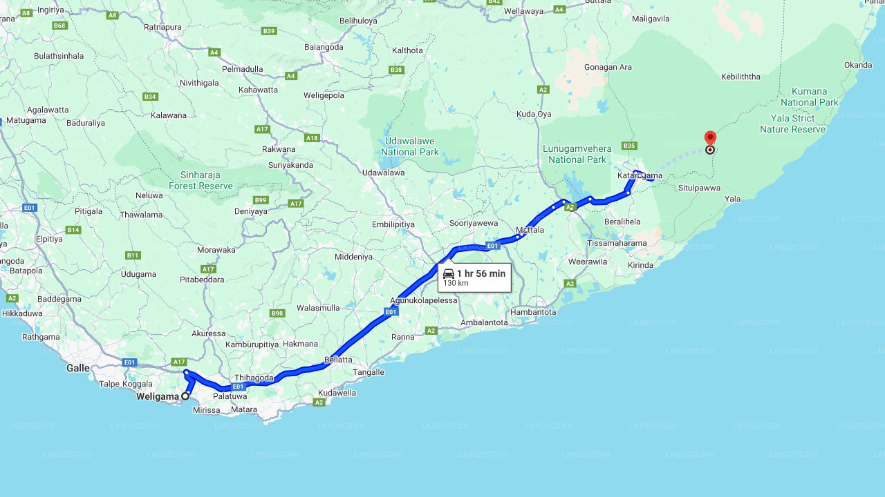 Du kommer att börja din turné från Weligama klockan 10:30. Din chaufför hämtar dig från ditt hotell och kör dig till Yala.